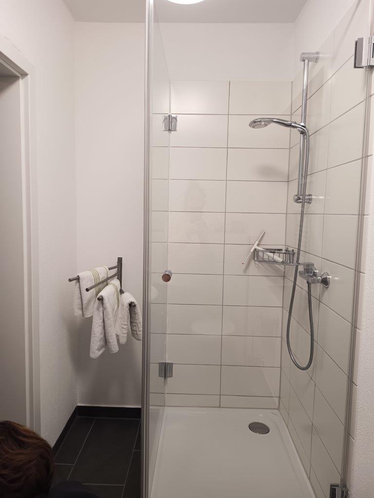 Unser Zimmer 1 wurde in 2022 neu renoviert. Es hat einen wunderbaren Blick über den "grünen Biergarten" direkt auf die Fulda. Dusche und WC modern und im Zimmer. Die beiden neue Echtholzbett (80x200 cm) können dicht zusammen gestellt werden.Kaltschaummatratze mit Härtegrad 2  Großer Flachbild LED TV mit drehbarer Wandhalterung, Fernbedienung und gutem Sound. Kühlschrank und Kaffeepadmaschine im Zimmer.